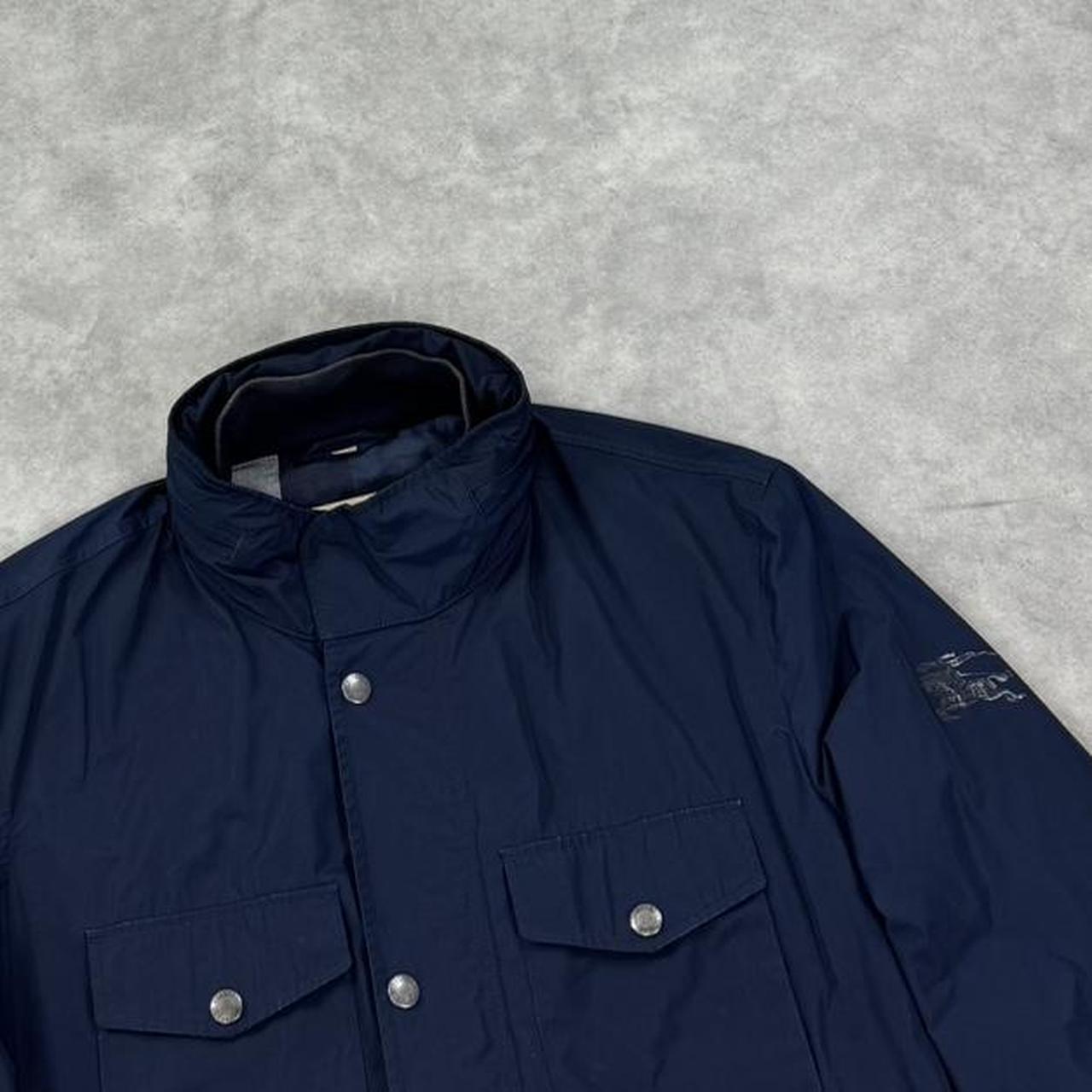Original 00s Burberry Brit waterproof style safari jacket. Nice minimal workwear style piece. Subtle dark blue tone. Big pockets and hood.