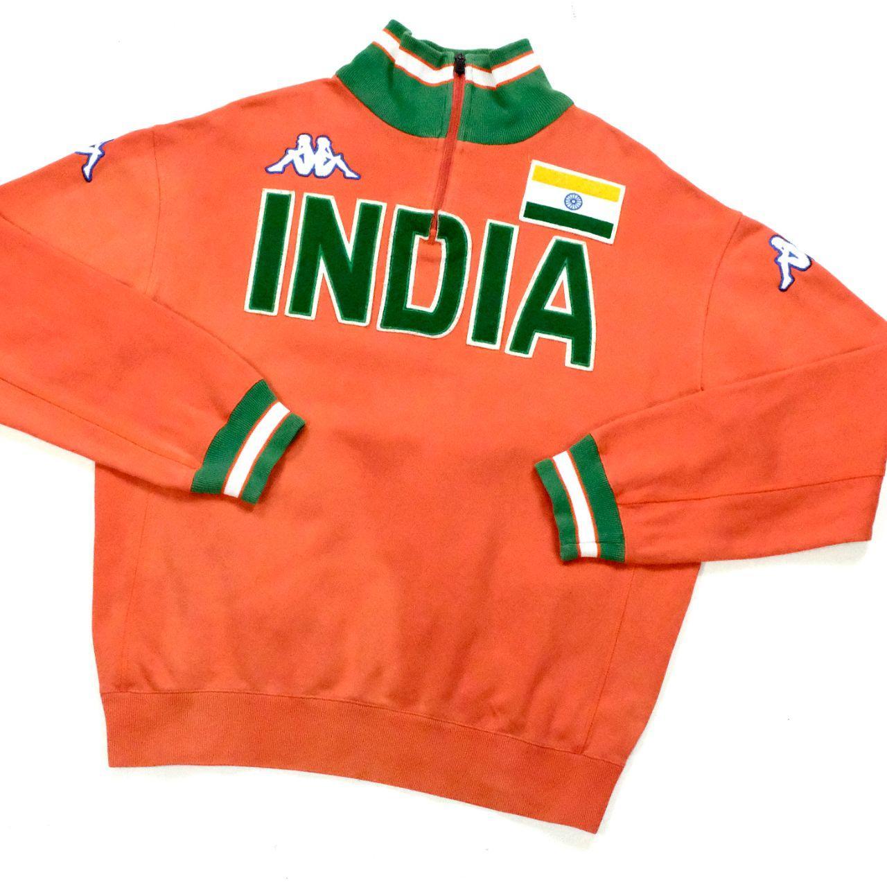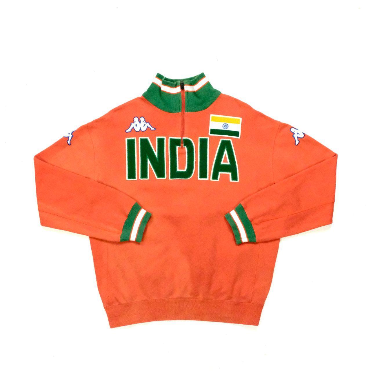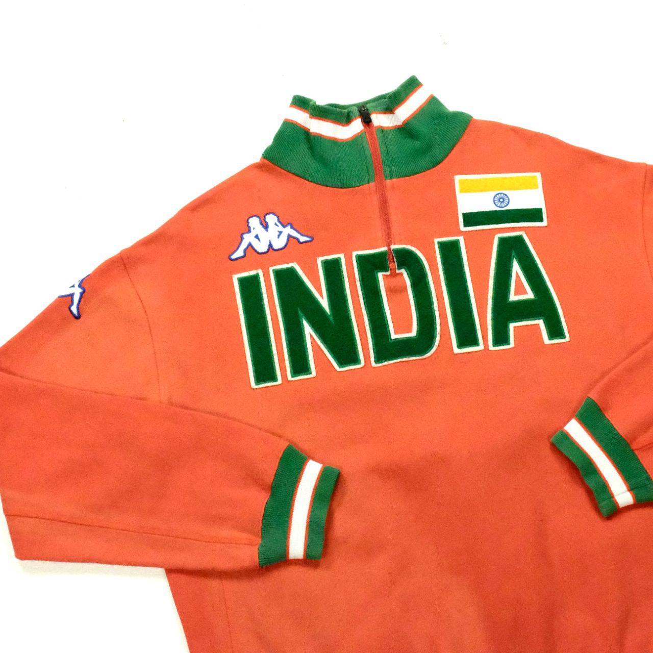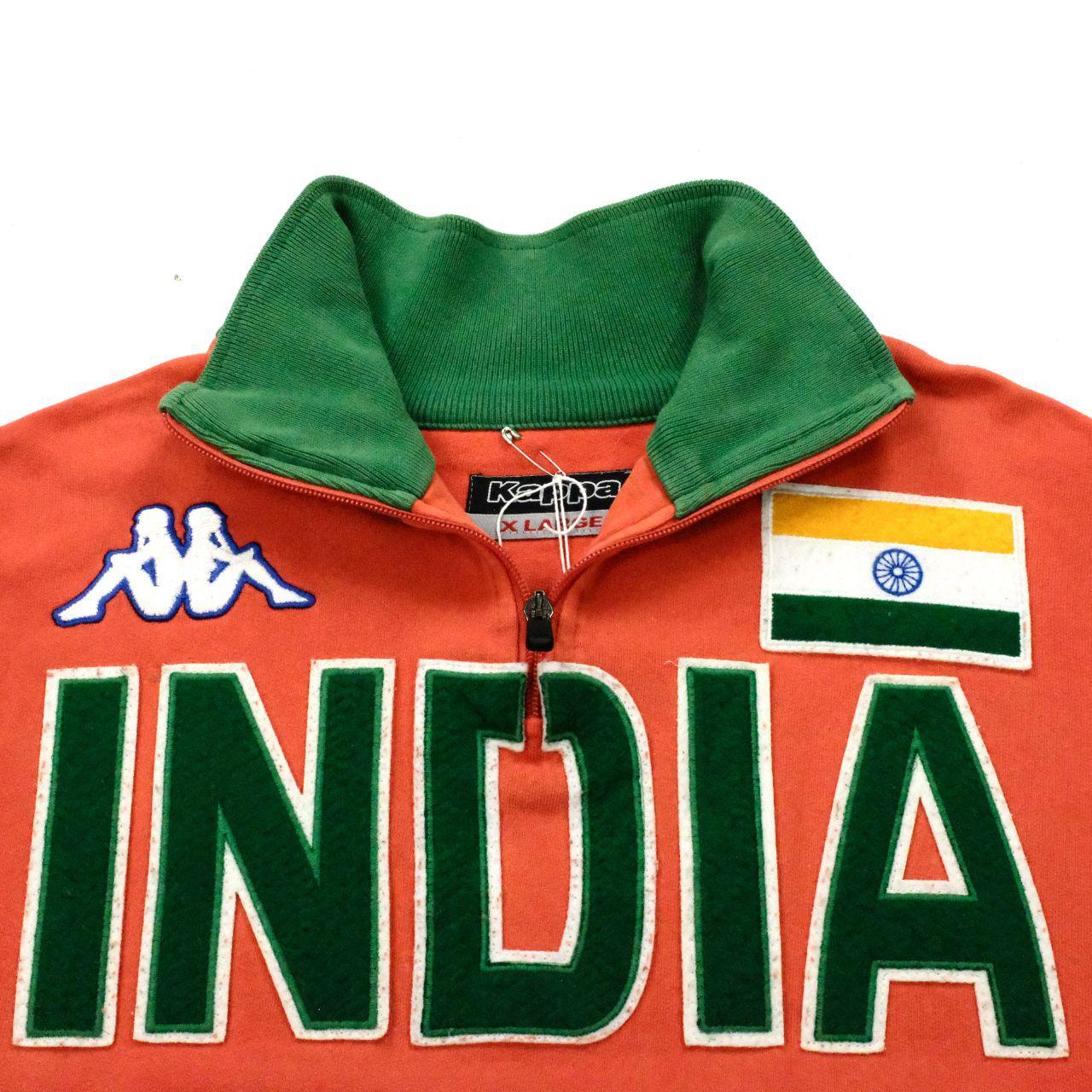 VTG 90's Kappa India Q-zip Sweatshirt. Bold orange/greenshades. Logo and flag embroidery. Great condition.